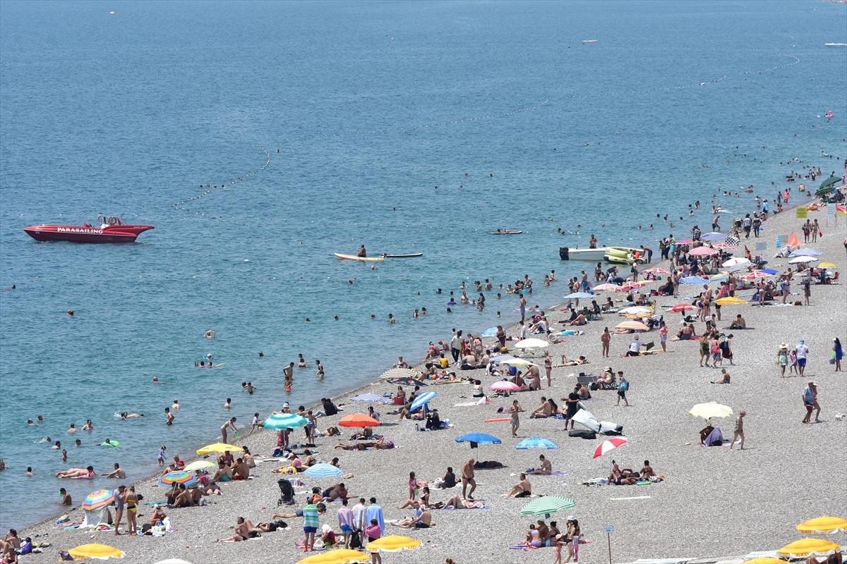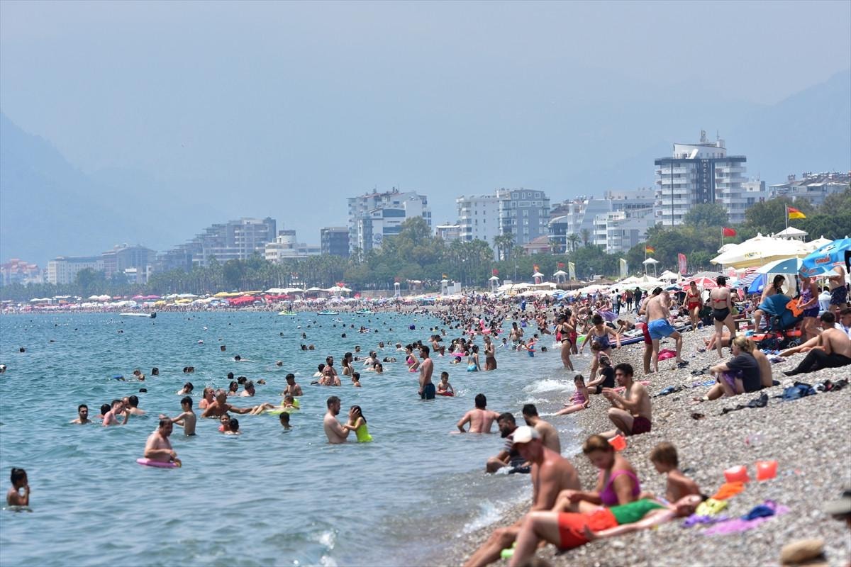 Yurt dışından ziyaretçilerin yanı sıra Kurban Bayramı tatili dolayısıyla Antalya'ya gelen yerli turistler, Konyaaltı ve Lara plajlarında sabahın erken saatlerinden itibaren yoğunluk oluşturdu.