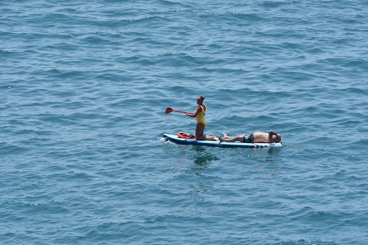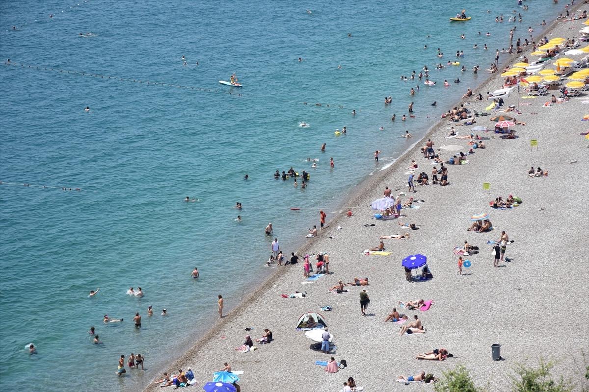 Hava sıcaklığının 30, deniz suyu sıcaklığının ise 27 derece ölçüldüğü kentte, serinlemek isteyen yerli ve yabancı turistler plajları doldurdu.