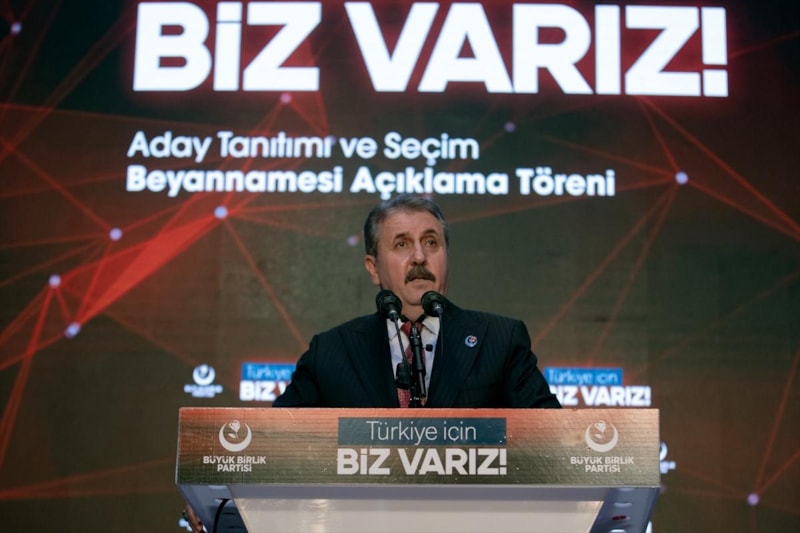 Büyük Birlik Partisi Genel Başkanı Mustafa Destici, Ankara Altındağ Kültür Sarayı'nda milletvekili adayları ve seçim beyannamesi tanıtım töreninde konuştu.