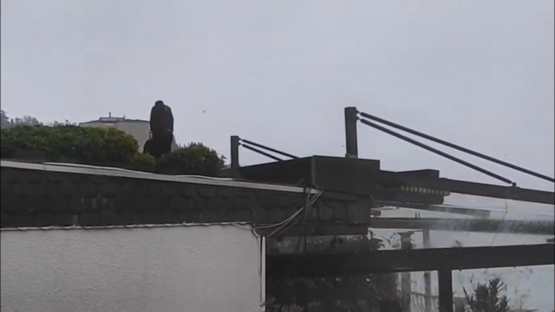 Ekiplerin otelin sahil kısmında bulunan bölümündeki alanda çatıdaki çalışmaları devam ediyor.