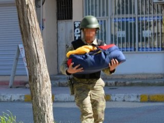 Nusaybin'de siviller güvenli bölgeye zırhlı araçla taşındı. Yayınlanan fotoğraflarda askerin bebeğe olan şefkati dikkat çekti.