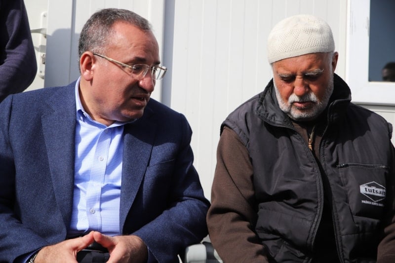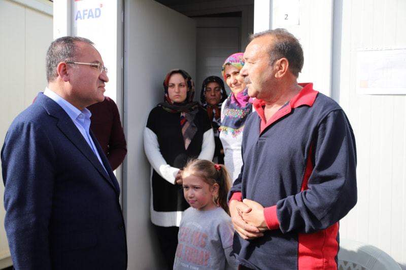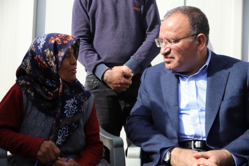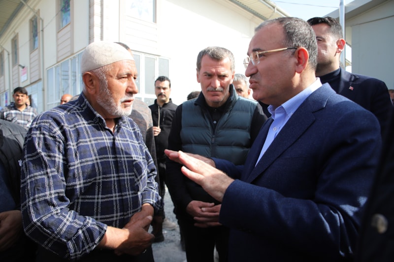 Nurdağı ilçesinde bulunan kriz ve koordinasyon merkezinde yürütülen çalışmalar ve ilçedeki adalet sisteminin işleyişi hakkında bilgi alan Bozdağ, daha sonra depremzedelerin kaldığı çadırlarda inceleme yaptı.