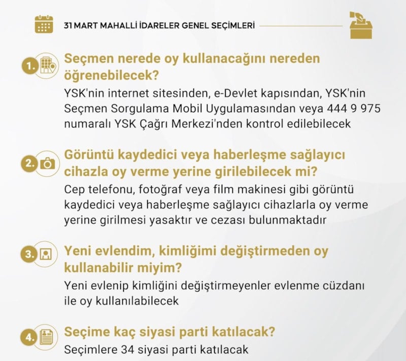 Türkiye, yeni yerel yöneticilerini seçmek için bugün sandık başına gidecek. İşte seçime ilişkin merak edilenler ve cevapları...