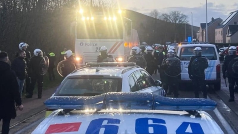 Polis, olayların sıçradığı Houthalen-Helchteren ilçesinde gruba tazyikli suyla müdahale etti.