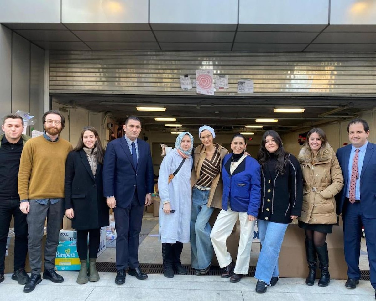Türkevi'ne gelerek, Türkiye'deki depremzedeler için yardım kutuları bırakan Hadid, Türkiye'nin New York Başkonsolosu Reyhan Özgür'e dayanışma ve geçmiş olsun mesajlarını iletti.