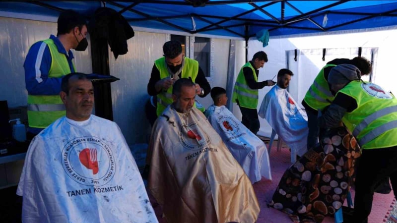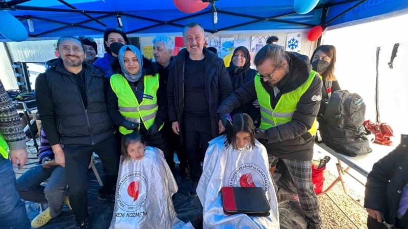 Kahramanmaraş merkezli asrın felaketinin ardından deprem bölgesine giden kuaför ve berberler, depremzede vatandaşları ücretsiz tıraş etti.