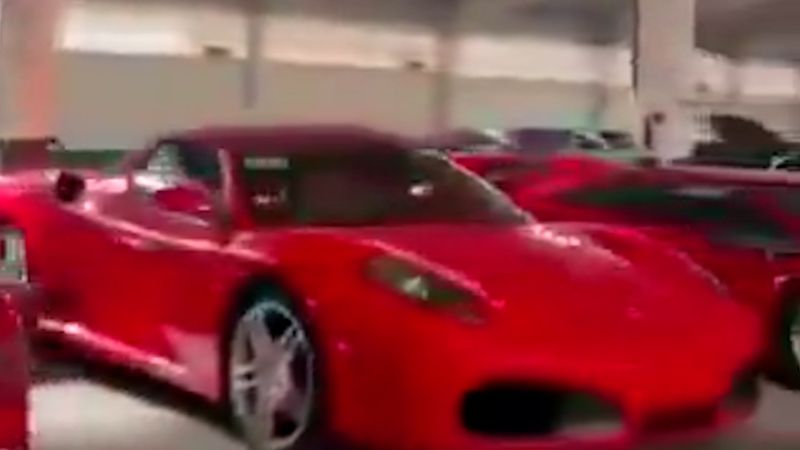 Ferrari, Audi, Mercedes ve çok sayıda lüks marka araçların sıra sıra dizildiği garaj böyle görüntülendi.