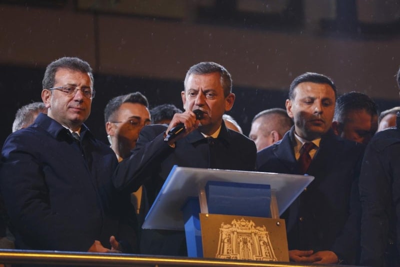 Gözaltına alınan Beşiktaş Belediye Başkanı Rıza Akpolat'a destek için Beşiktaş'ta konuşma yapan Özgür Özel'in sözünü kesen partililerin "Cumhurbaşkanı İmamoğlu" sloganı atması dikkat çekti.