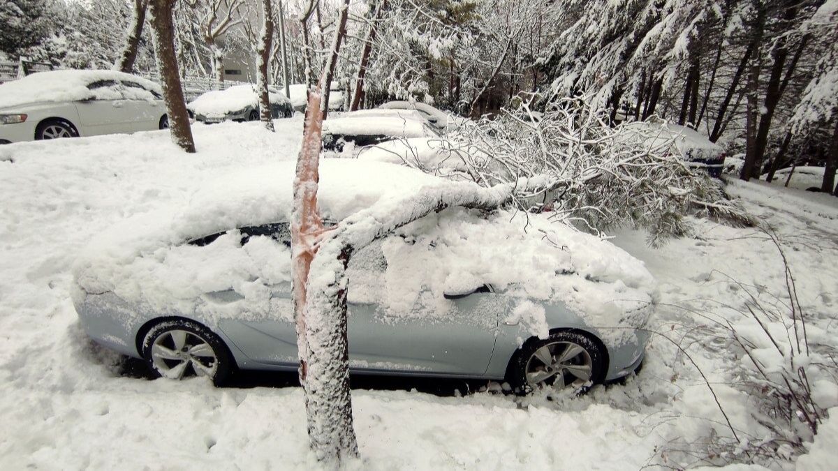Beşiktaş ilçesinde de karın ağırlığını kaldıramayan iki ağaç, park halindeki otomobillerin üzerine düştü.