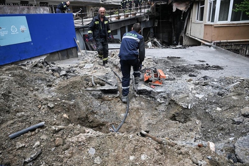 Olaya ilişkin soruşturma devam ederken, binadaki çalışmalar da devam ediyor.