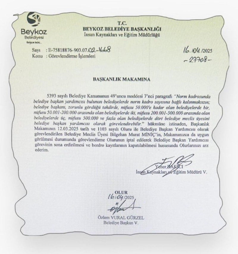 Beykoz Belediye Başkan Yardımcısı Fidan Gül'ün gözaltına alındığı anlarda evinin kapısını açan Beykoz Belediye Başkan Yardımcısı Murat Miniç'in görevden alındığı ortaya çıktı.