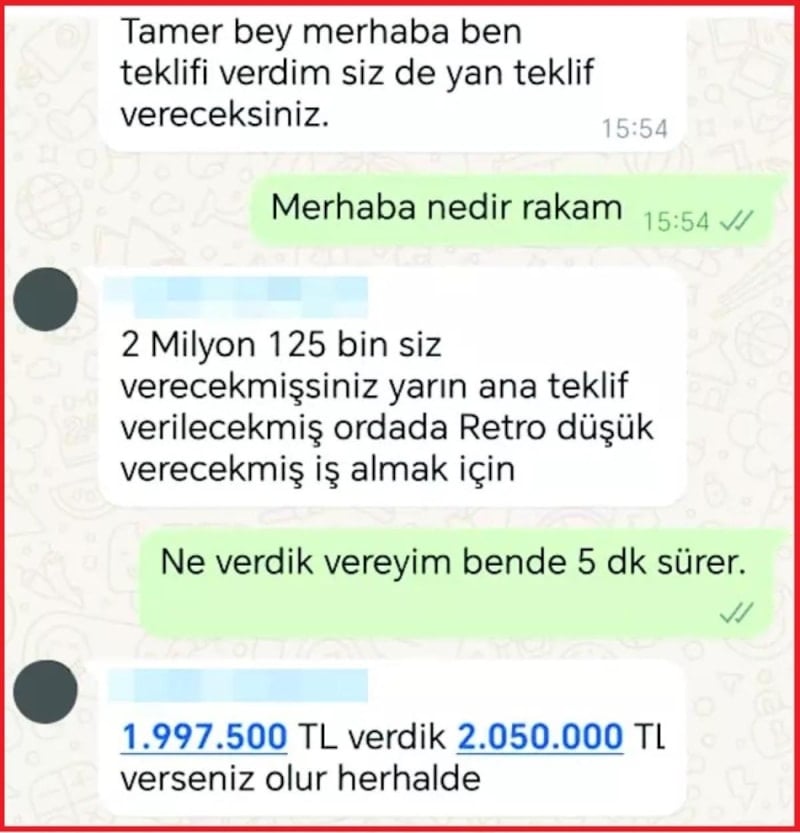 X şahıs: Tamer Bey siz 2 milyon 250 bin verecek misiniz? Biz de 2 milyon 70 bin TL verecekmişiz.