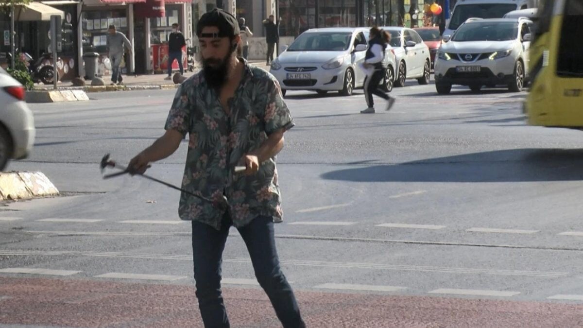 Akman, Yavuz Sultan Selim Bulvarı'nda kırmızı ışıkta bekleyen sürücülere, 'Flower Stick' adı verilen çubuklarla gösteri yapıp, harçlığını bu şekilde kazanıyor.