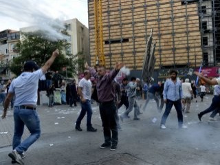 Açıklamanın ardından, bölgede önlem alan polis ekipleri, protestoya devam eden ve slogan atan gruptakileri, dağılmaları yönünde uyardı. Polisin uyarılarını dikkate almayarak karşı koyan gruba, tazyikli su ve biber gazıyla müdahale edildi.