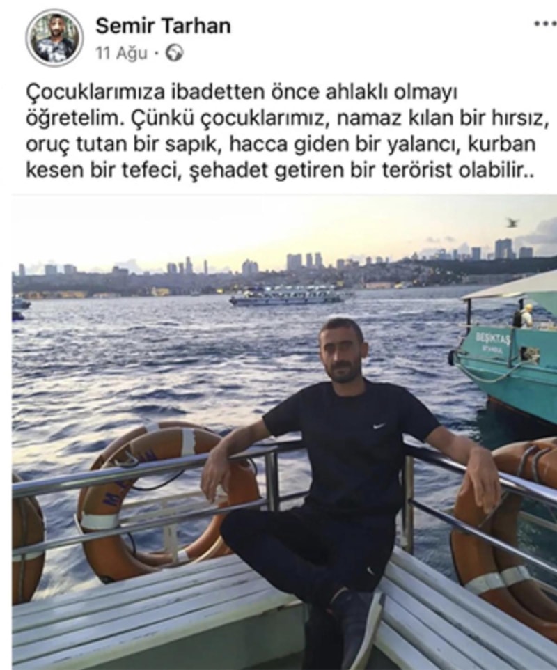 Tacizci, sosyal medya hesabından yaptığı paylaşımın bir tanesinde, "Çocuklarımıza ibadetten önce ahlaklı olmayı öğretelim. Çünkü çocuklarımız namaz kılan bir hırsız, oruç tutan bir sapık hacca giden bir yalancı, kurban kesen bir tefeci olabilir.” paylaşımında bulunduğu ortaya çıktı.