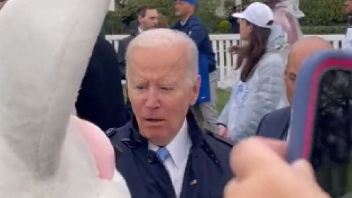 Biden, kendisine el sallayan Paskalya tavşanını görünce korkmuş bir yüz ifadesi ile tepki verdi. Açıklamalarını yarım bırakan Biden, tavşanın gelmesiyle alandan uzaklaştı.