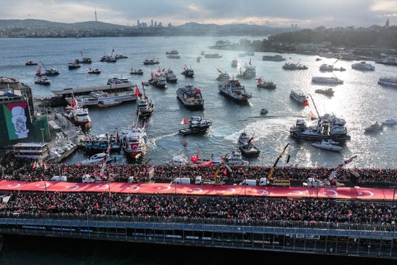 Bir ayrımı muhakkak yapmalıyız. Müslüman Türk milleti olarak bugün Galata Köprüsü’nde toplanmış olan insanlık ittifakının üyeleri olarak meselemiz bir dinle değil meselemiz bir halkla değil peygamberimizin bize örneklerinin bizi getirdiği noktada o günden bugüne hiçbir Müslüman hükümdar yoktur ki milletini şu dinin mensubu bu dinin mensubu diye ayırt etsin.