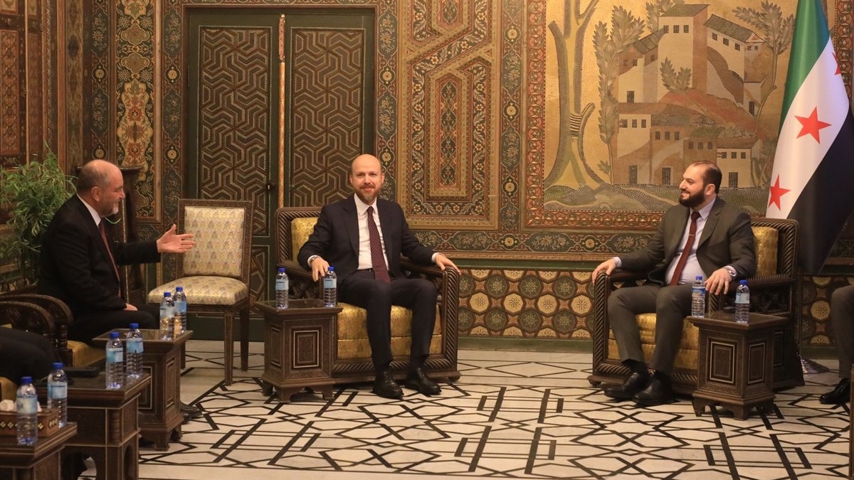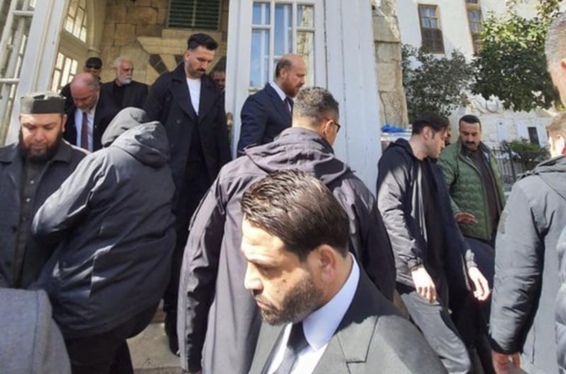 Suriye basınına göre, Türk heyeti ve Bilal Erdoğan ile Suriye'nin yeni lideri Ahmed Şara cuma namazını kılmak üzere Eski Şam'daki Emevi Camii'ne geldi.