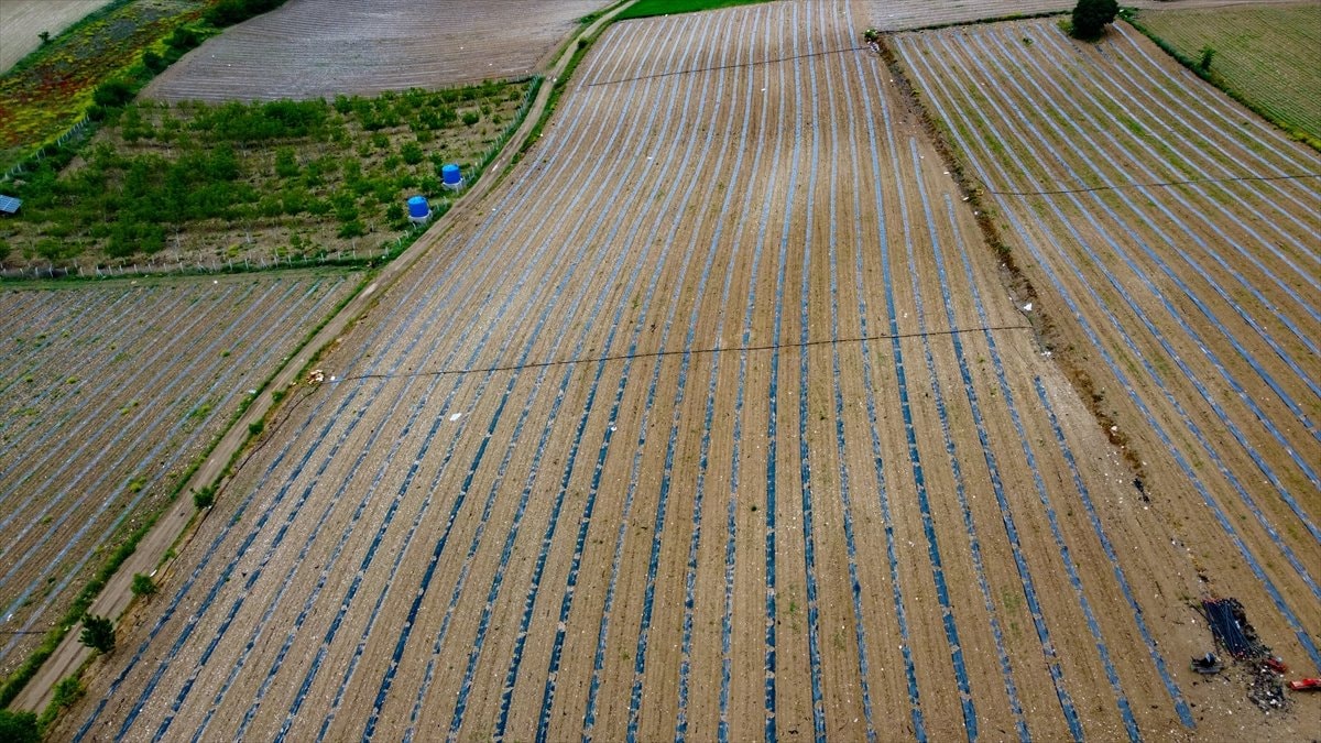 "Birinci ekimde, 'tül altı' dediğimiz, üzerine tül örterek karpuzları dondan, kırağıdan koruyoruz. Önce malç makinesiyle naylon yayıyoruz. Sonra üzerine tel diktiriyoruz. Üzerine tülbent ya da elyaf örtüyoruz. Bunlar birinci ekim. Telini, tülünü aldık, çapasını yaptık. Artık suyla, gübreyle, ilaçla devam edeceğiz. Kendilerini kurtarmış vaziyete geldiler. Sonra diğer iki ekim dönemine geçiyoruz. Kapasiteye göre üç boy karpuz ekiyoruz."