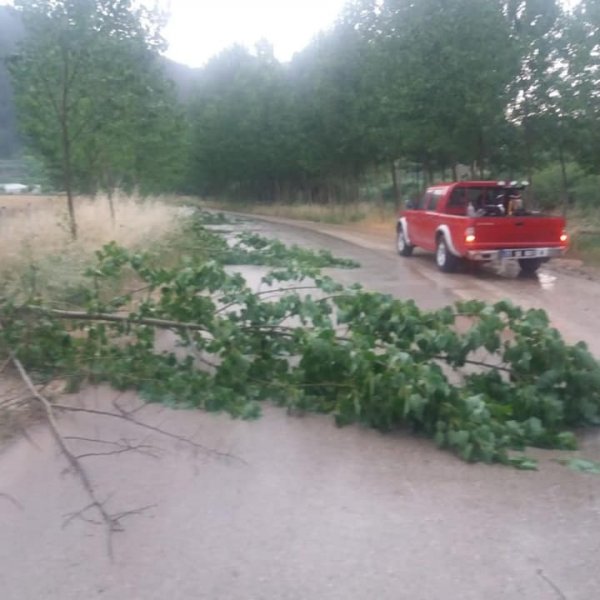 Rüzgarın ve yağmurun dinmesinin ardından belediye ekipleri tarafından devrilen ağaçlar temizlendi.