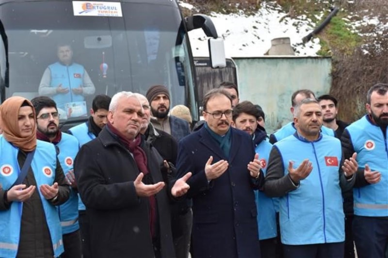 Konuşmadan sonra yapılan dua ile gönüllü yardım ekibi deprem bölgesine uğurlandı.