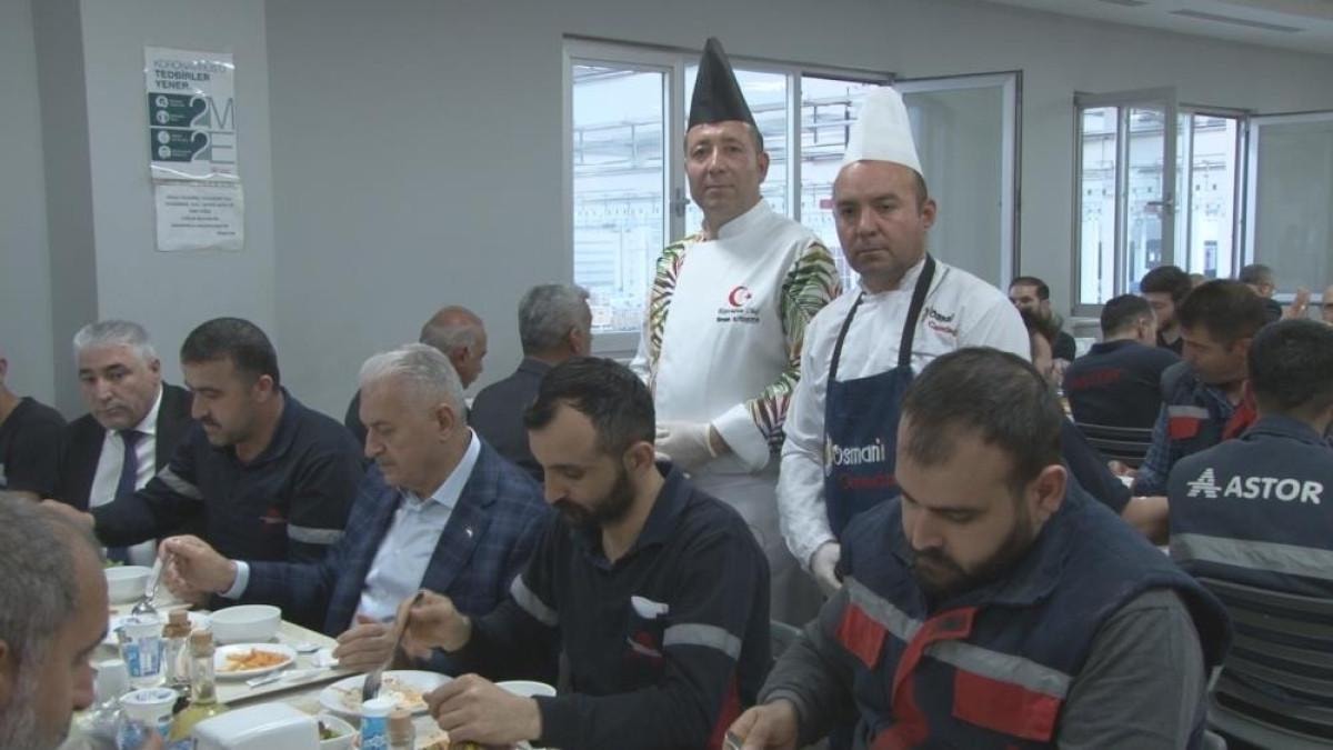 Binali Yıldırım, yemekten sonra yaptığı açıklamada, “Alın terini akıl terine katarak ailenizi mutlu eden hem de ülkemize katma değer sağlayan siz değerli çalışan kardeşlerimizle buluşmaktan çok mutluyum. Bu gibi fabrikaların olması bizim en büyük gururumuz. Astor dediğimiz fabrika sadece Türkiye’nin değil, Avrupa’nın da kendi alanında en büyük fabrikası. Böyle bir kabiliyete sahip olmak çok güzel bir şey. Urfalı bir kardeşimiz memlekette işini yaparken elektrik kesilmelerine canı sıkılıyor ve ‘Bu elektrikler neden sık sık kesiliyor. Bunun bir çaresi vardır illaki’ diyor. Daha sonrasında bu işleri yapan fabrikayı satın alıyor. Türk insanının girişim kabiliyetini gösteren bir olaydır bu. Satın almakla kalmıyor, fabrikayı büyütüyor ve 90’dan fazla ülkeye ve 6 kıtaya ihracat yapıyor. Satılan her üründe sizin iziniz var. Bu çok değerlidir.” dedi.