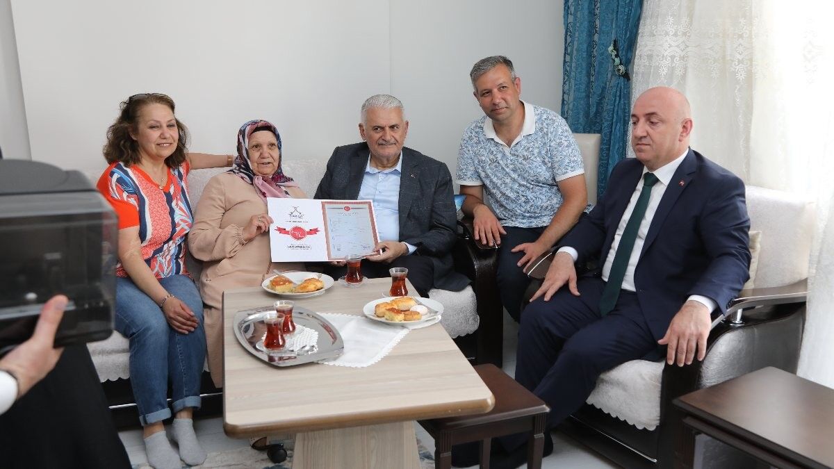 67 yaşındaki Neriman Uysal, tapusunu Binali Yıldırım ve Mehmet Özhaseki'nin elinden aldı.