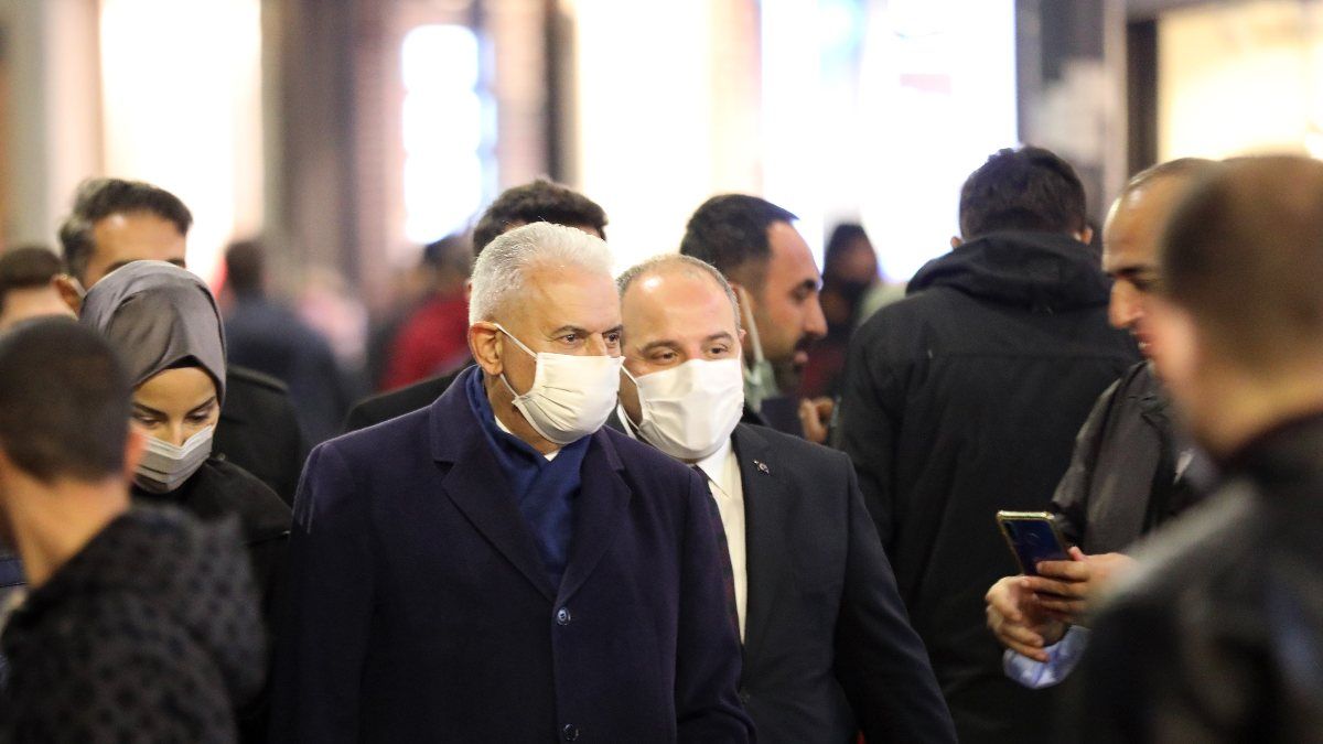 AK Parti Genel Başkanvekili Binali Yıldırım ile Sanayi ve Teknoloji Bakanı Mustafa Varank, yenilenen Atatürk Kültür Merkezi’nin (AKM) dün akşamki açılış töreninin ardından yürüyerek İstiklal Caddesi'ne geçti.