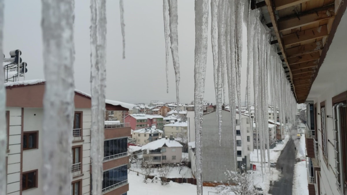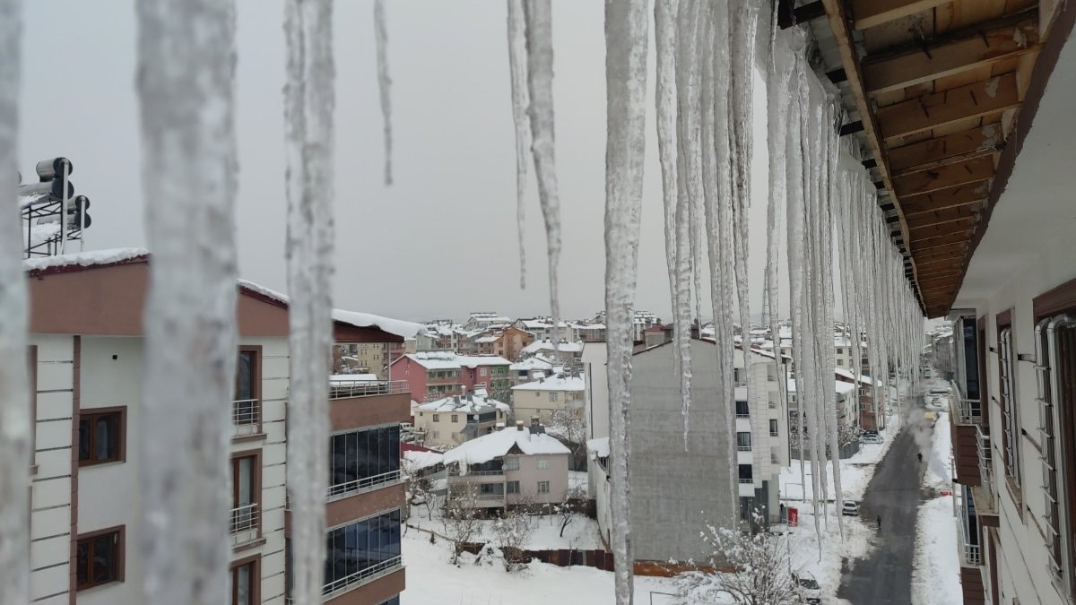 Boyları 1,5 metreyi aşan buz sarkıkları tehlike oluştururken kentin bir çok noktasında ise buzlanma oluştu.