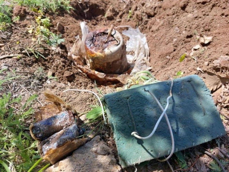 Bingöl'de arazide tespit edilen taş mevzi içinde gömülü 5 kilogramlık düdüklü tencerede, basma düzenekli ve fünye bağlantısı bulunan el yapımı patlayıcı ele geçirildi.