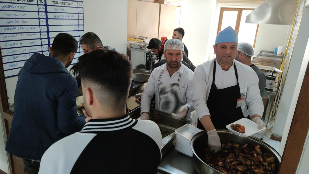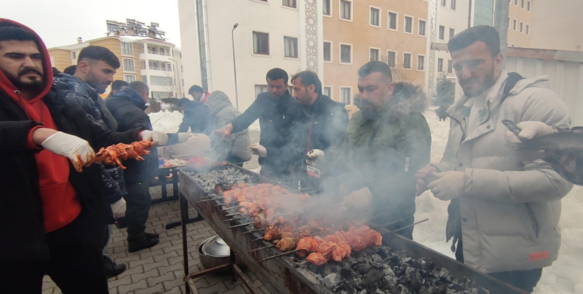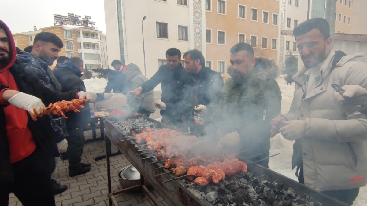 Gönüllüler KYK bahçesinde mangallar yakarak pişirdikleri ürünleri depremzedelere ikram etti.
