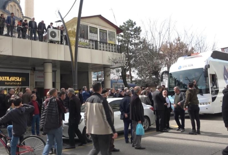 Cuma namazı öncesi esnafları ziyaret eden Babacan, namaz sonrasında otobüs içerisinden kısa bir selamlama konuşması yaptı.