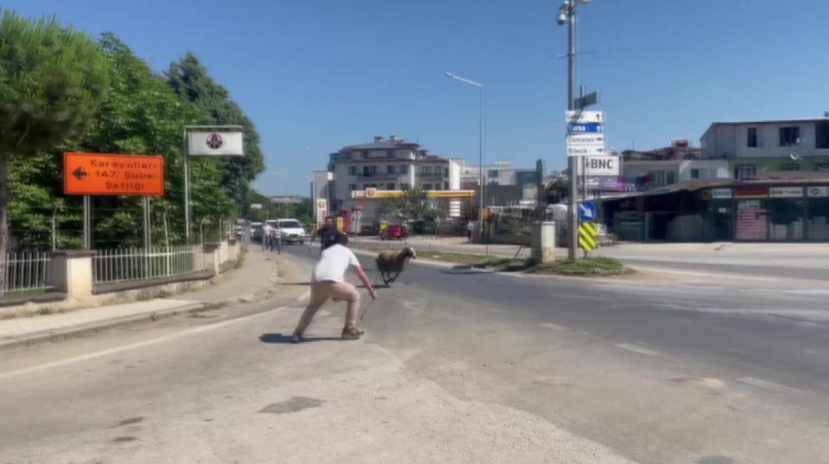 İznik’te pide işi ile uğraşan İrfan Karaman’a ait kurbanlık koç, tam kesileceği esnada sahibinin elinden kaçtı.