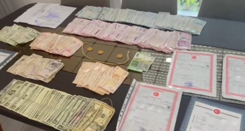 Operasyonda birçok tapu, çek, senet, kredi kartı, dolar, Türk lirası ve ziynet eşyası ele geçirildi