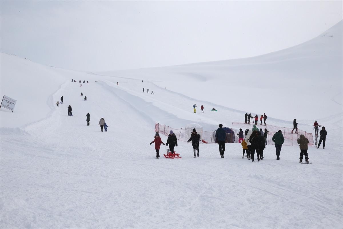 Yarıyıl ve hafta sonu tatilini fırsat bilen çok sayıda vatandaş, aileleriyle kayak merkezine geldi.