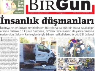 Kanlı terör saldırısını manşetine taşıyan Birgün gazetesi, "İnsanlık düşmanları" manşetini attı.