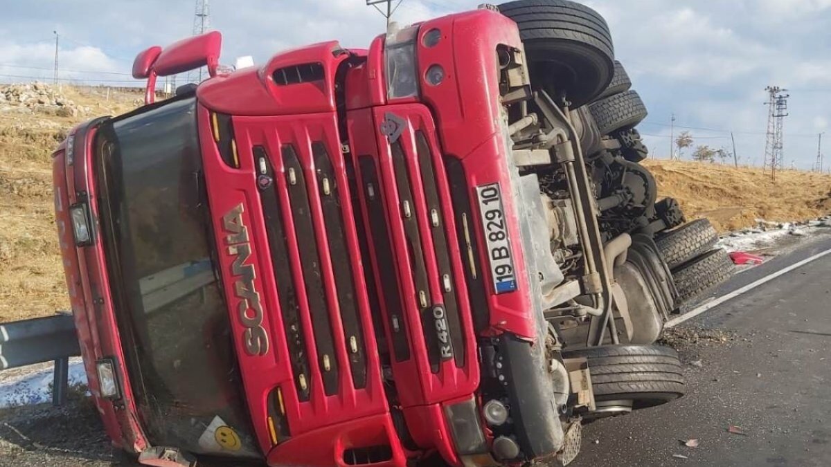 İranlı sürücü Asghar Ghorbani yönetimindeki tır, Tatvan’a bağlı Yelkenli köyü mevkiinde kontrolden çıkarak devrildi.