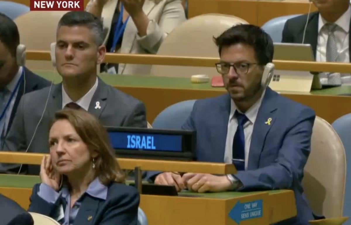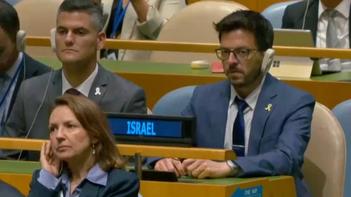 Konuşması sık sık alkışlarla kesilen Cumhurbaşkanı Erdoğan'ın hitabı sırasında İsrail delegasyonu da kendilerine ayrılan bölümdeydi.