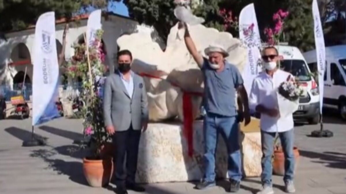 CHP'li Bodrum Belediye Başkanı Ahmet Aras, bugün ilçesinde sünger heykeli açılış törenine katıldı.