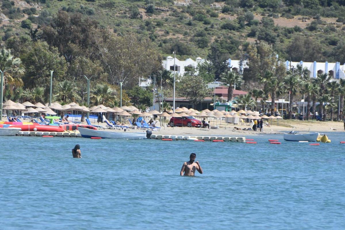 Güneşi gören yerli ve yabancı turistler, başta Gümbet ve Kumbahçe olmak üzere plajları doldurdu.