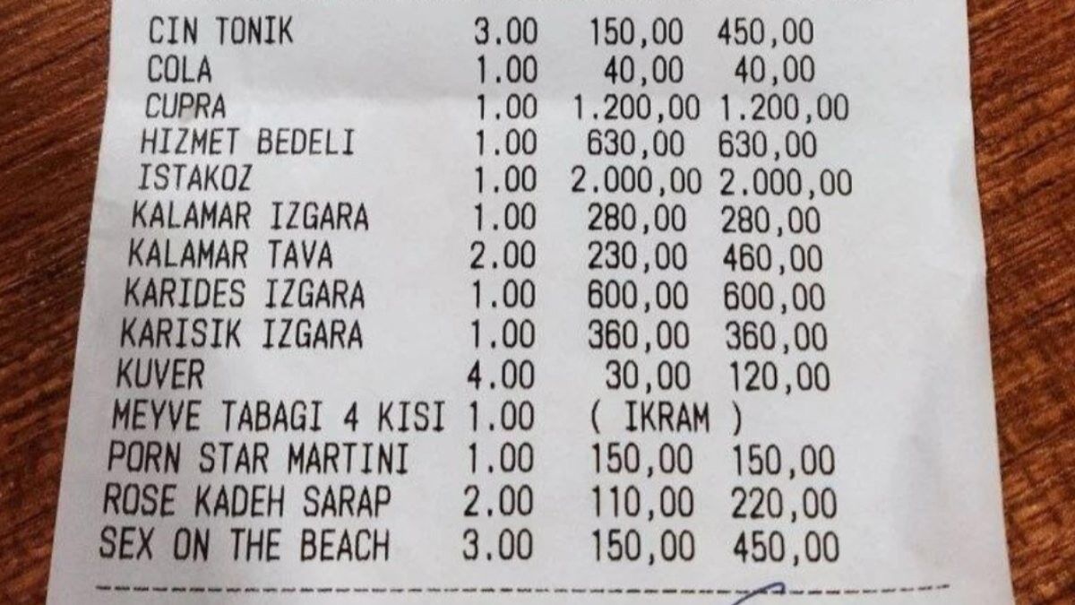 Paylaşılan bir adisyon fotoğrafında, 4 kişilik turist aileye gittikleri restoranda gelen 6 bin 500 liralık adisyon sosyal medyada gündem oldu.