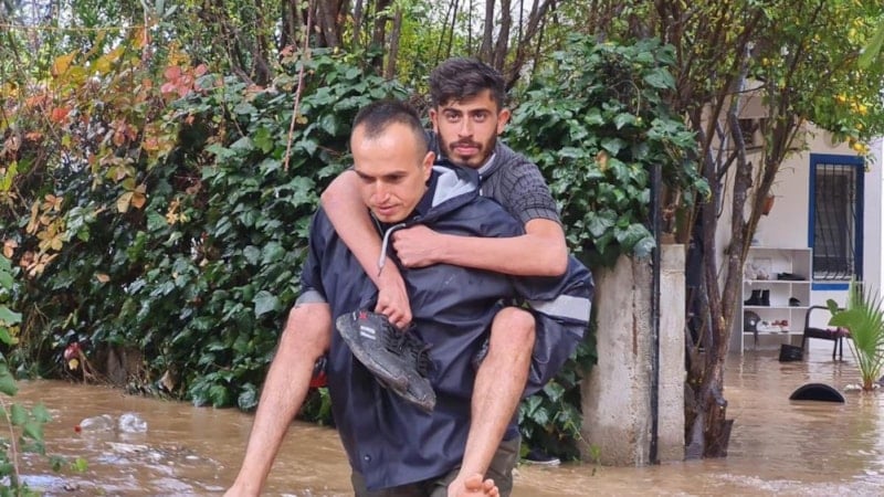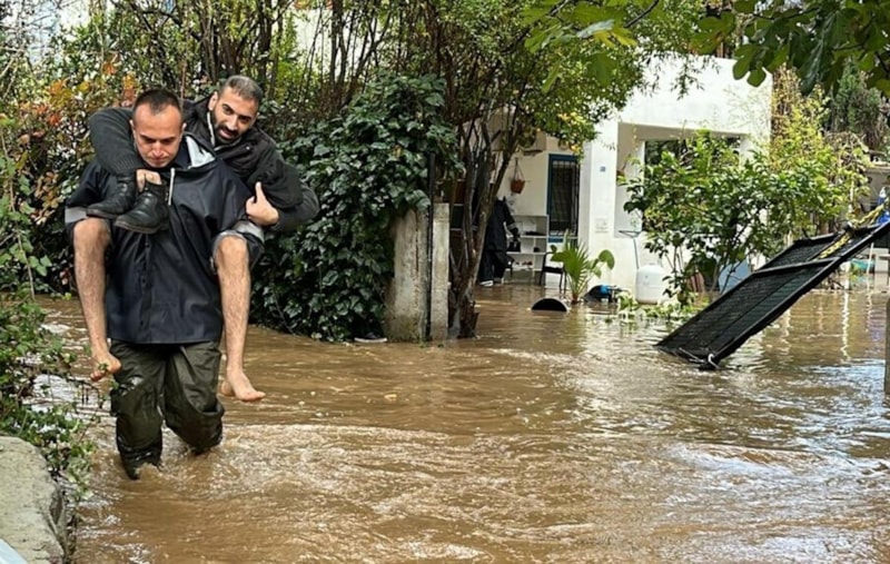 Muğla'nın Bodrum ilçesinde, kuvvetli yağışın ardından tıkanan derenin çevresindeki ev ve yolları su basınca vatandaşlar mahsur kaldı. Ekipler tahliye için harekete geçti.
