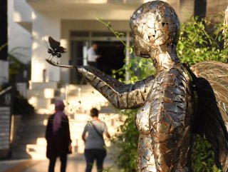 Çelikten heykel, belediye bahçesine yerleştirildi.