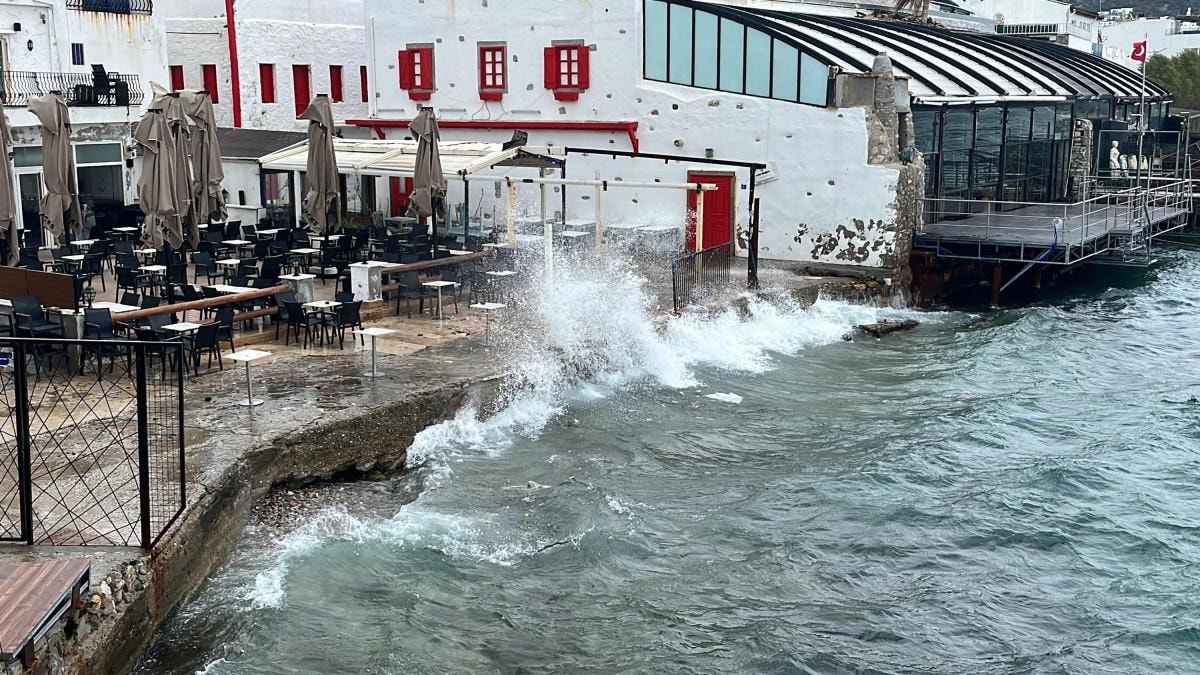 Bodrum ilçesinde dalga boyu yer yer 2 metreyi aştı.