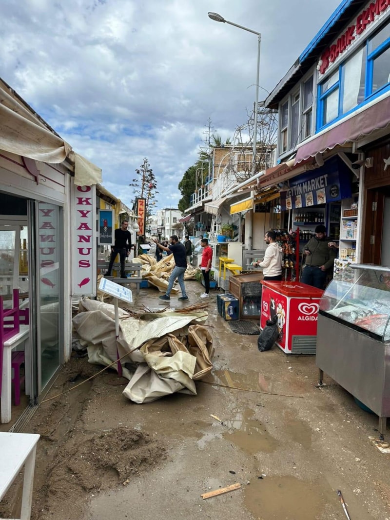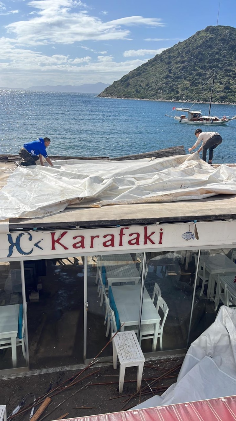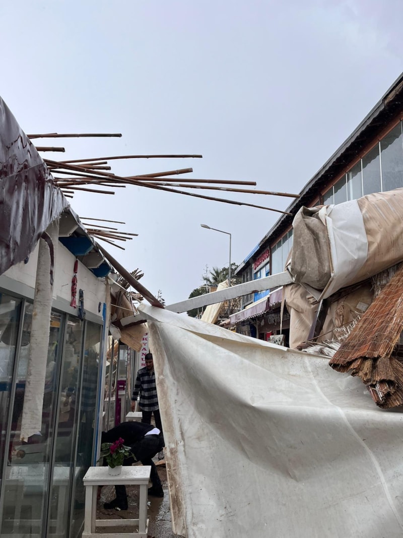 Gümüşlük sahilinde ise restoranların tentelerini ve çatılarını uçurdu, camlarını kırdı.