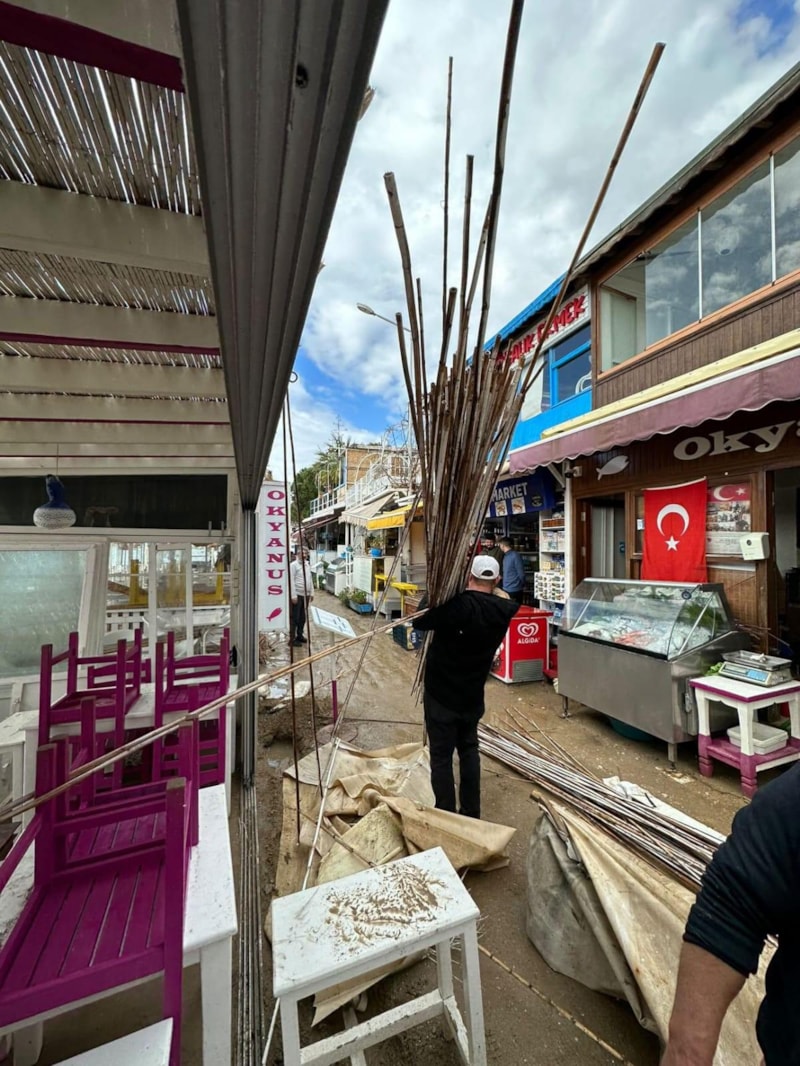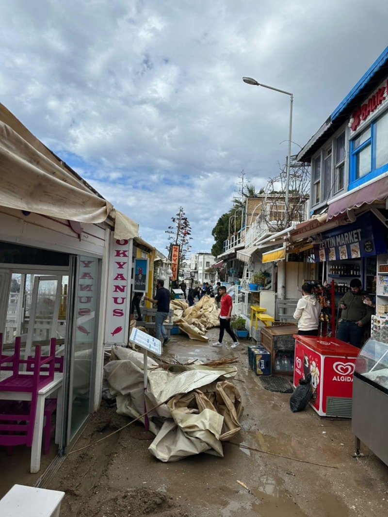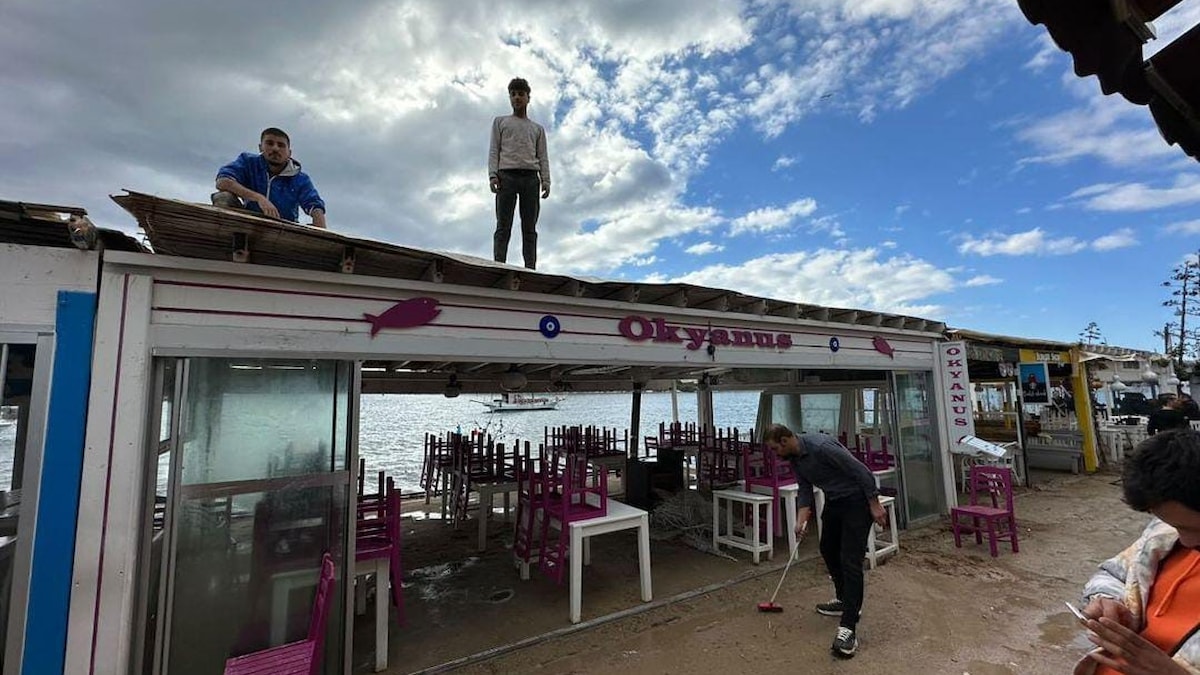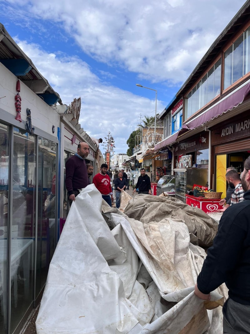 Gümüşlük sahilinde ise restoranların tentelerini ve çatılarını uçurdu, camlarını kırdı.