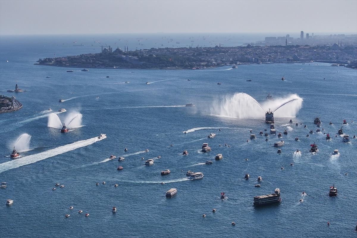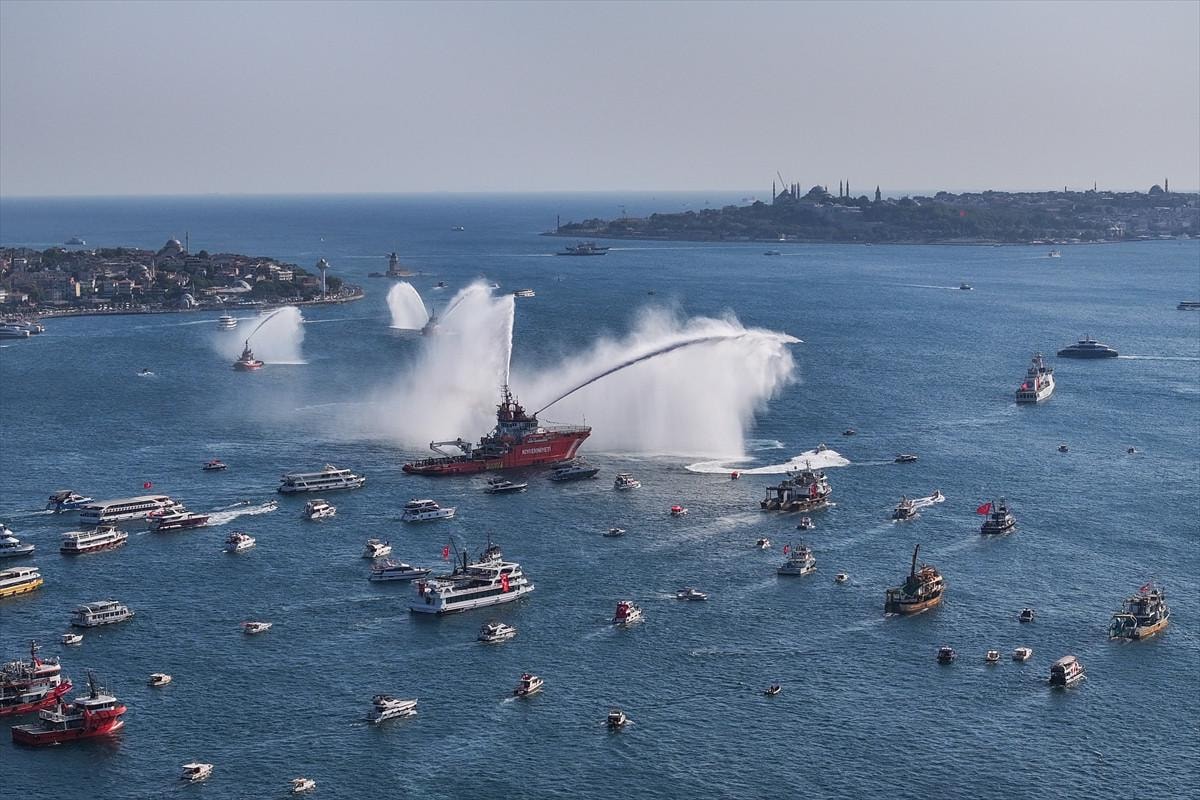 İstanbul Boğazı'ndaki korteje 253 tekne katıldı.