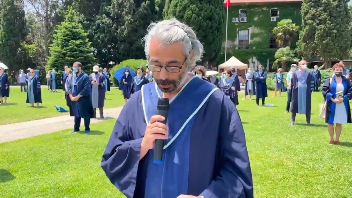 Her gün üniversitenin güney kampüsünde cübbelerini giyerek bir araya gelen akademisyenler, rektörlük binasına sırtlarını dönerek protesto ediyor.