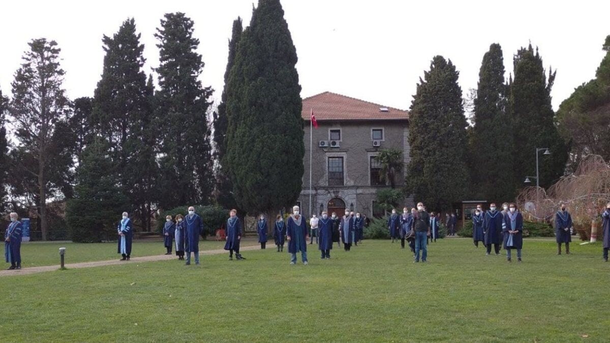 Her gün üniversitenin güney kampüsünde cübbelerini giyerek bir araya gelen akademisyenler, rektörlük binasına sırtlarını dönerek protesto ediyor.