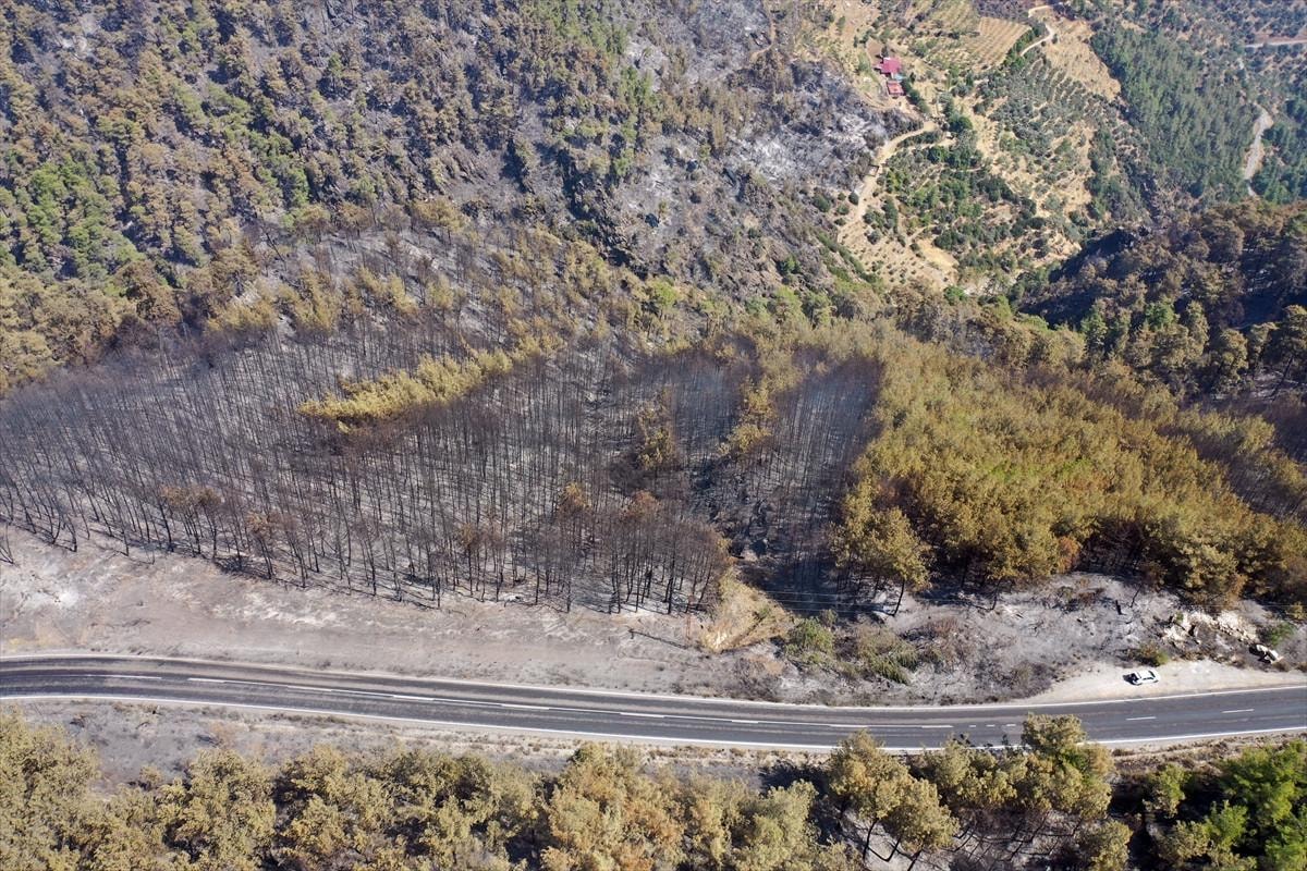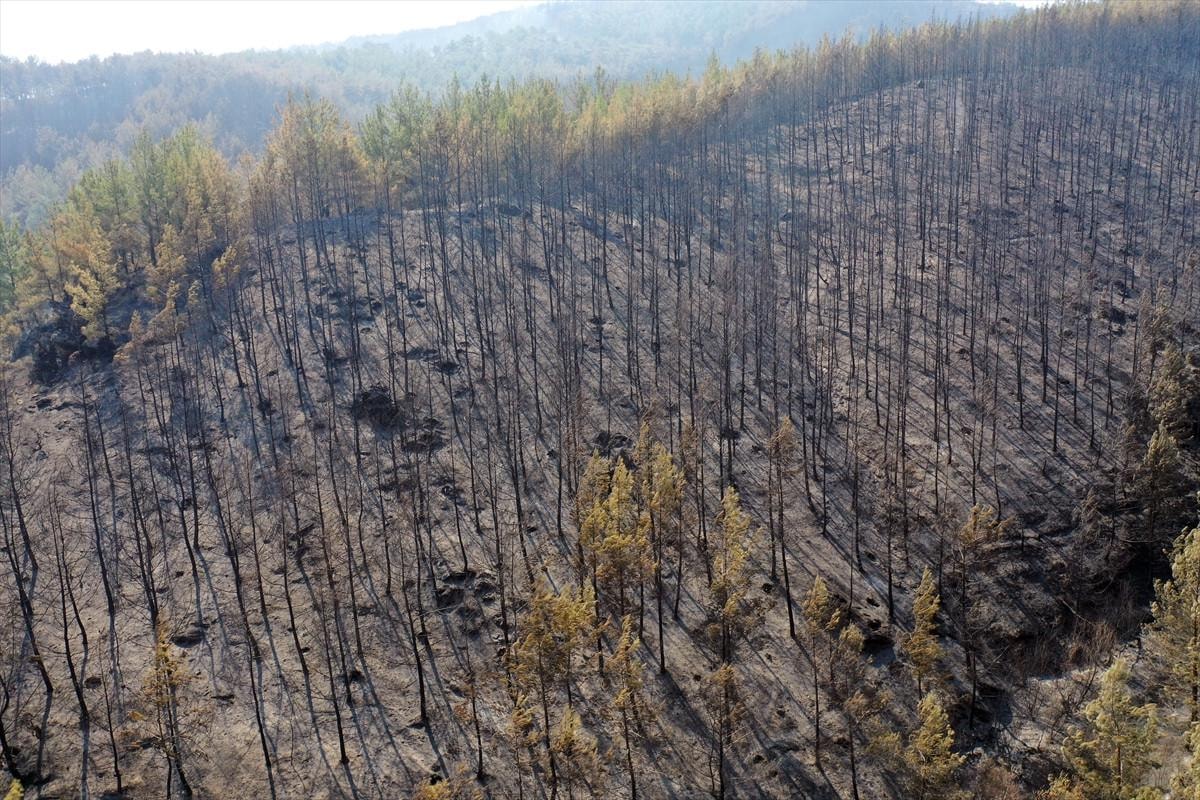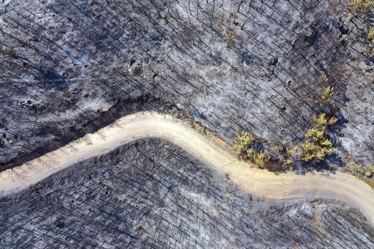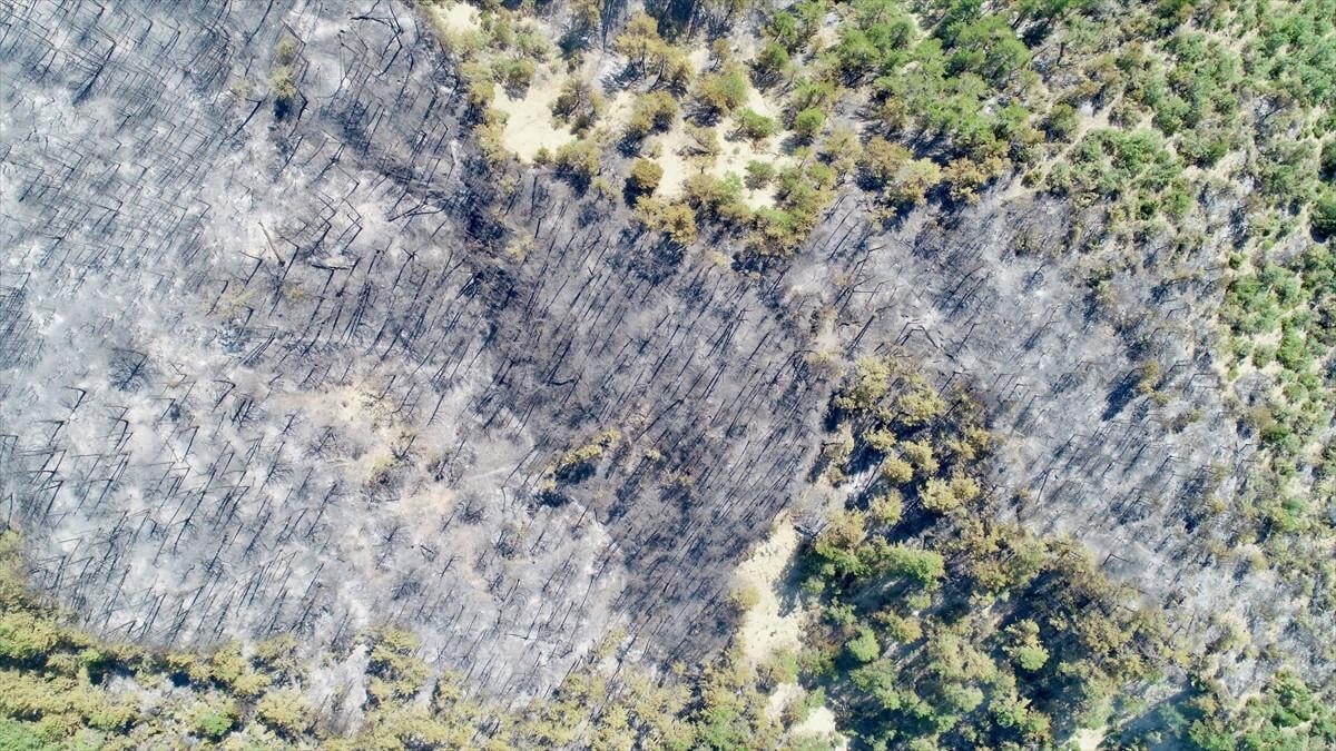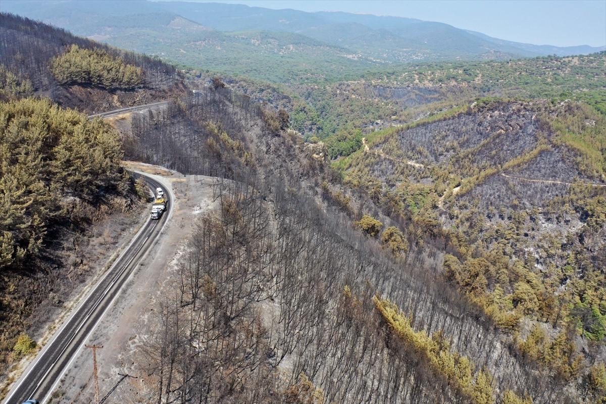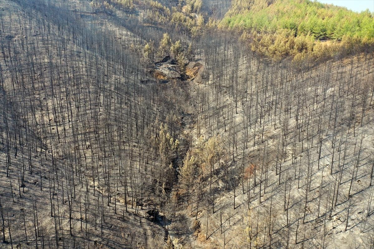 Aydın'daki orman yangınında yanan alanlar görüntülendi.